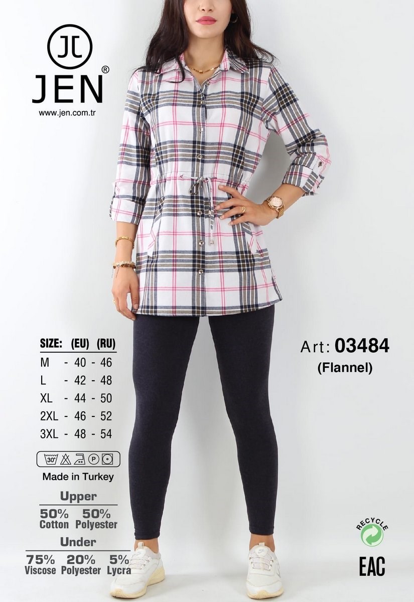 Комплект фланелевая рубашка на пуговицах и длинные эластичные леггинсы.