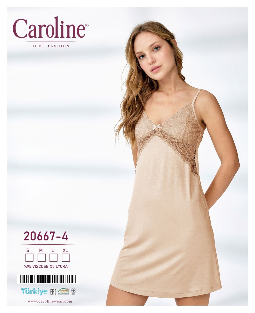 Вискозная трикотажная ночная сорочка на регулируемых бретелях с кружевом.