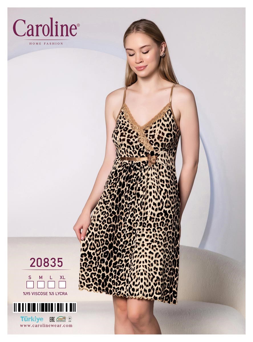 Вискозная трикотажная ночная сорочка на регулируемых бретелях, с кружевом по вырезу.