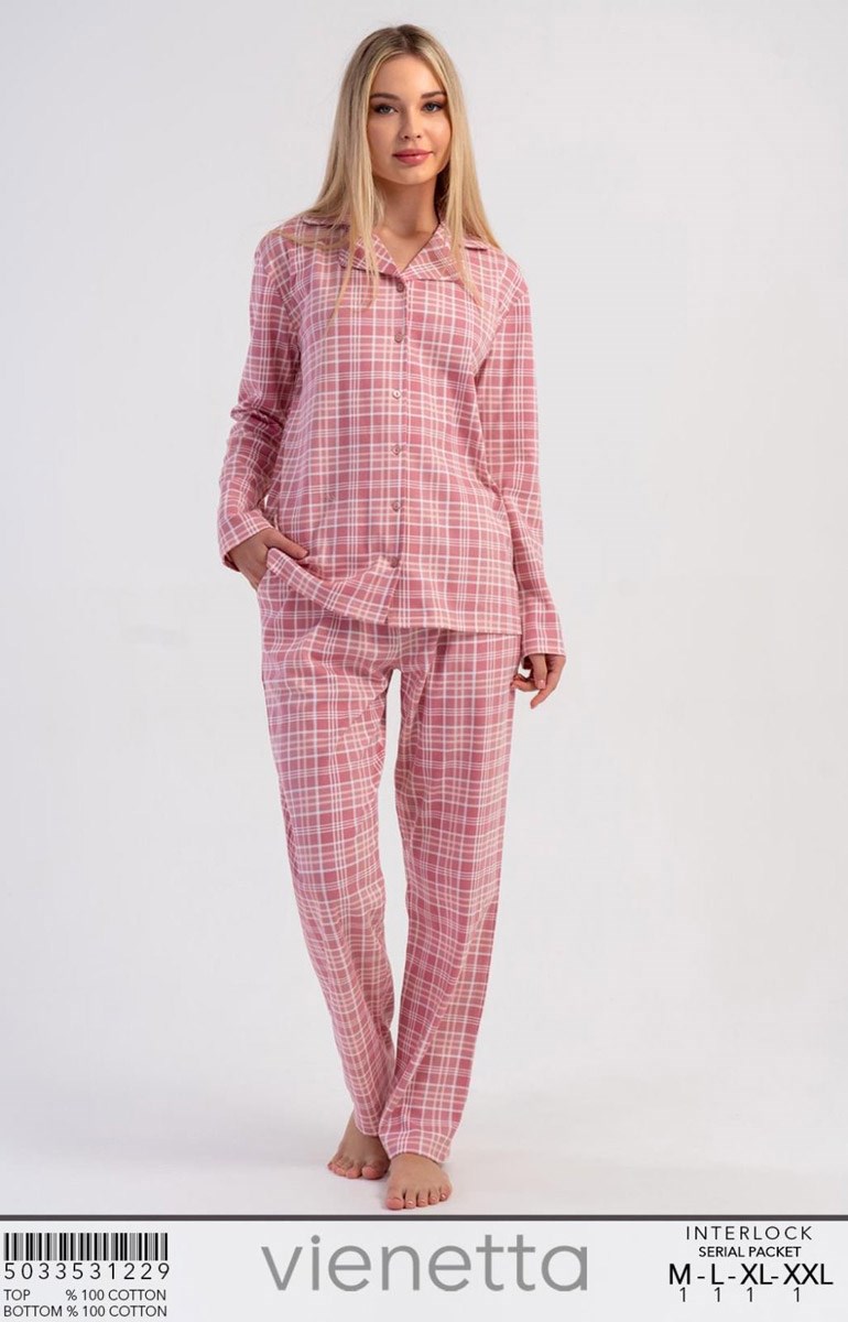 Классическая пижама в клетку из плотного х/б трикотажа (интерлок) - рубашка с отложным воротником и свободные брюки.
