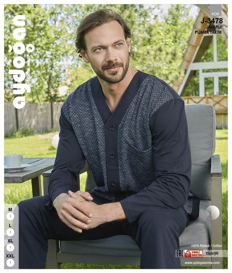 Мужской домашний костюм из плотного трикотажа: джемпер v-образный вырез пуговицы по всей длине, брюки однотонные в тон планки.