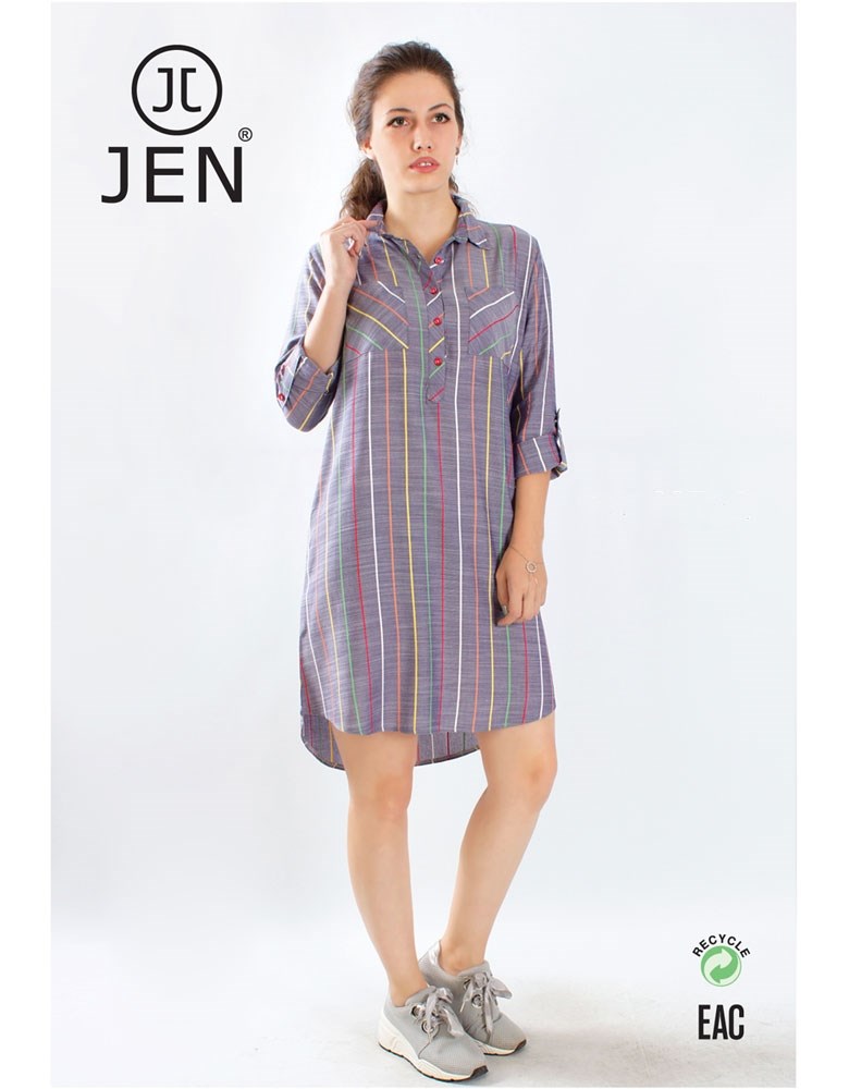 Штапельная туника свободного кроя. Планка на пуговицах. Длинный рукав.